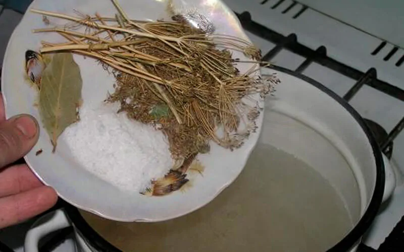 - Из пряностей обязательным является созревший укроп зонтиками, если нет такого, то можно взять 2-3 столовых ложки семян укропа на 5-6 литров воды.